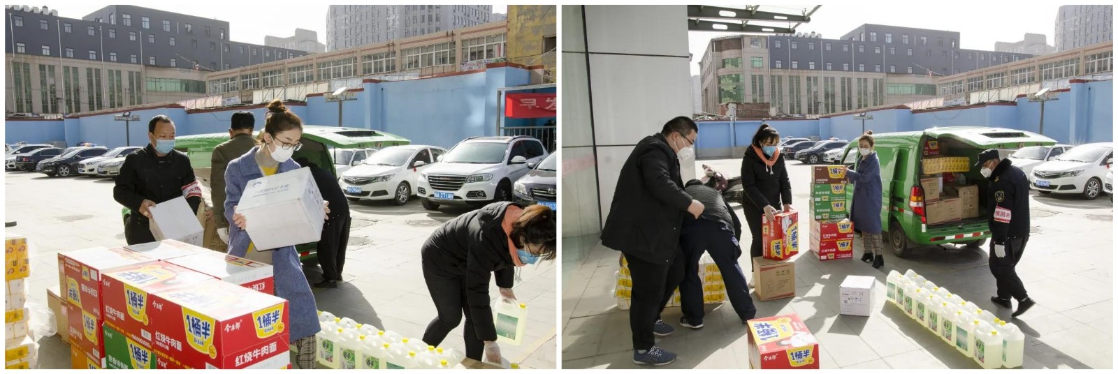 3月10日上午,,,,,今年会官网登录入口文化礼物城常务副总司理尚林、今年会官网登录入口百货日化城常务副总司理国朋军携部分员工代表,,,,,向石家庄市南三条市场管理服务中心捐赠价值10000元的爱心物资,,,,,其中包括一线事情员急需的“84”消毒液、喷壶、药皂、口罩、利便面等物品,,,,,用现实验动支持那些在抗击肺炎疫情防控事情中的一线职员,,,,,给他们送去温暖,,,,,表达对他们的敬意 。。。。。。